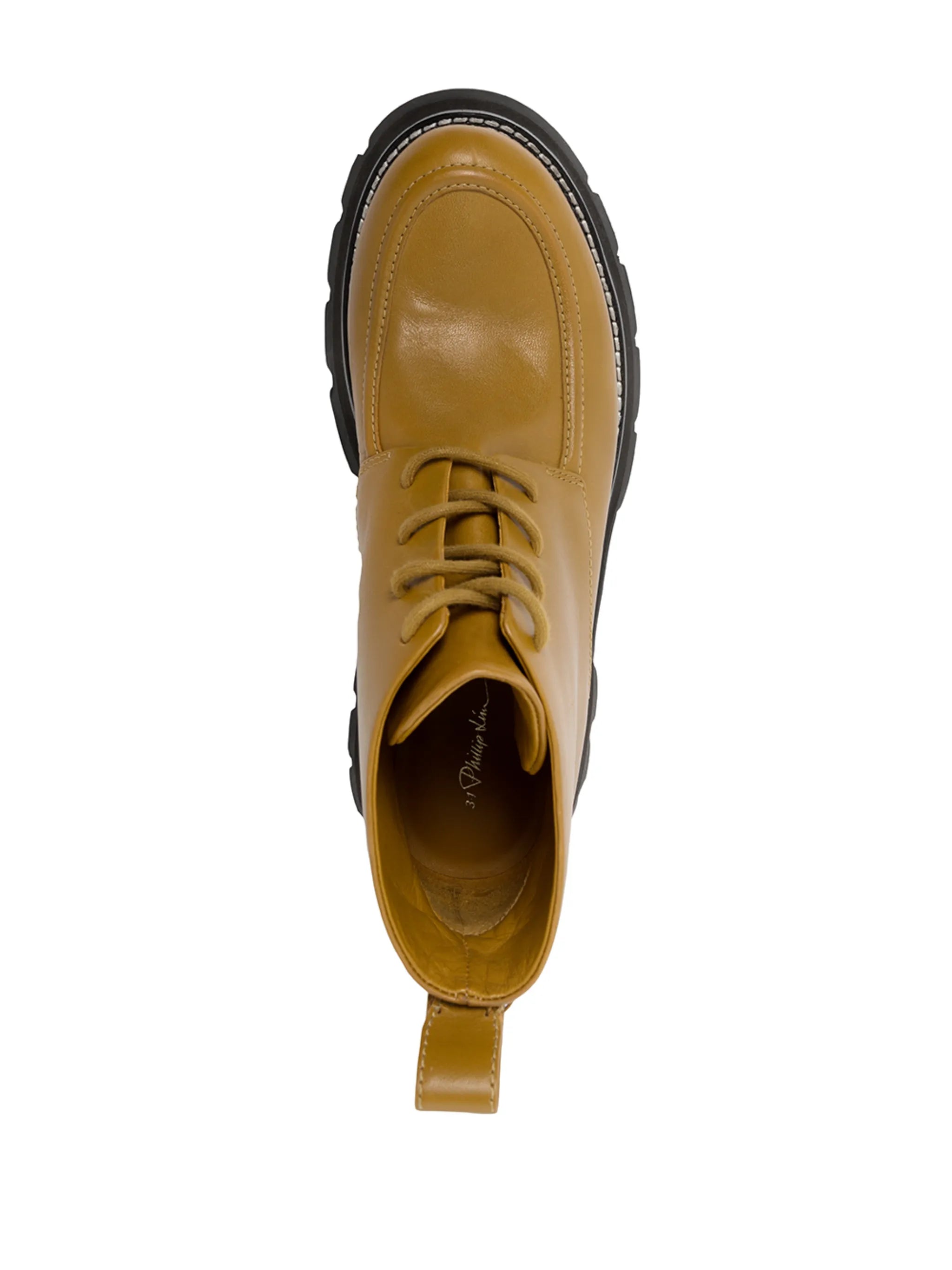 3.1 Phillip Lim’in Kate combat bot modeli, markanın zahmetsiz özgüven estetiğini yansıtır. Birinci sınıf dana derisinden üretilen bu bilek boy bağcıklı botlar, ton sür ton tasarımı ve kalın taban yapısıyla her kombine cesur bir duruş kazandırır.