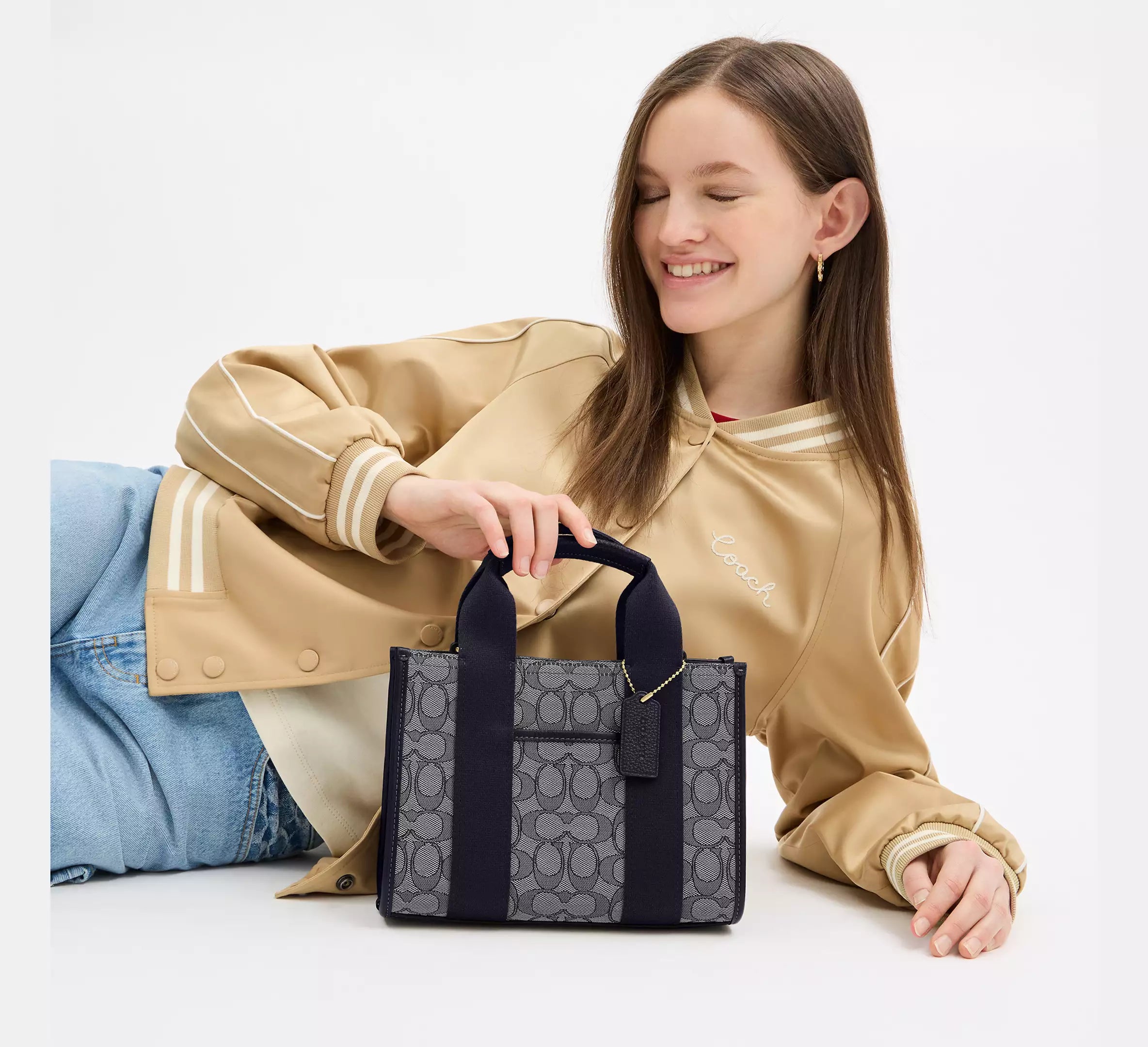 • Tırnak trim hariç, bu Coach çanta, yenilenebilir pamuk ve geri dönüştürülmüş polyester karışımından üretilen Signature jakarlı kumaştan hazırlanmıştır.